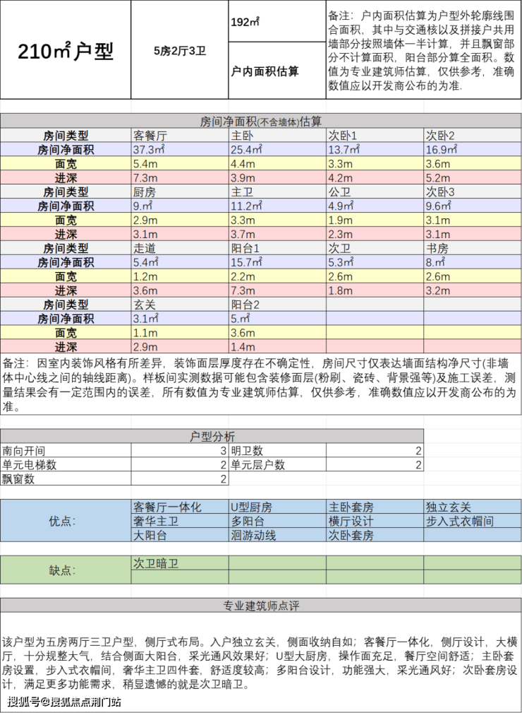一、建面约210方五房两厅三卫: