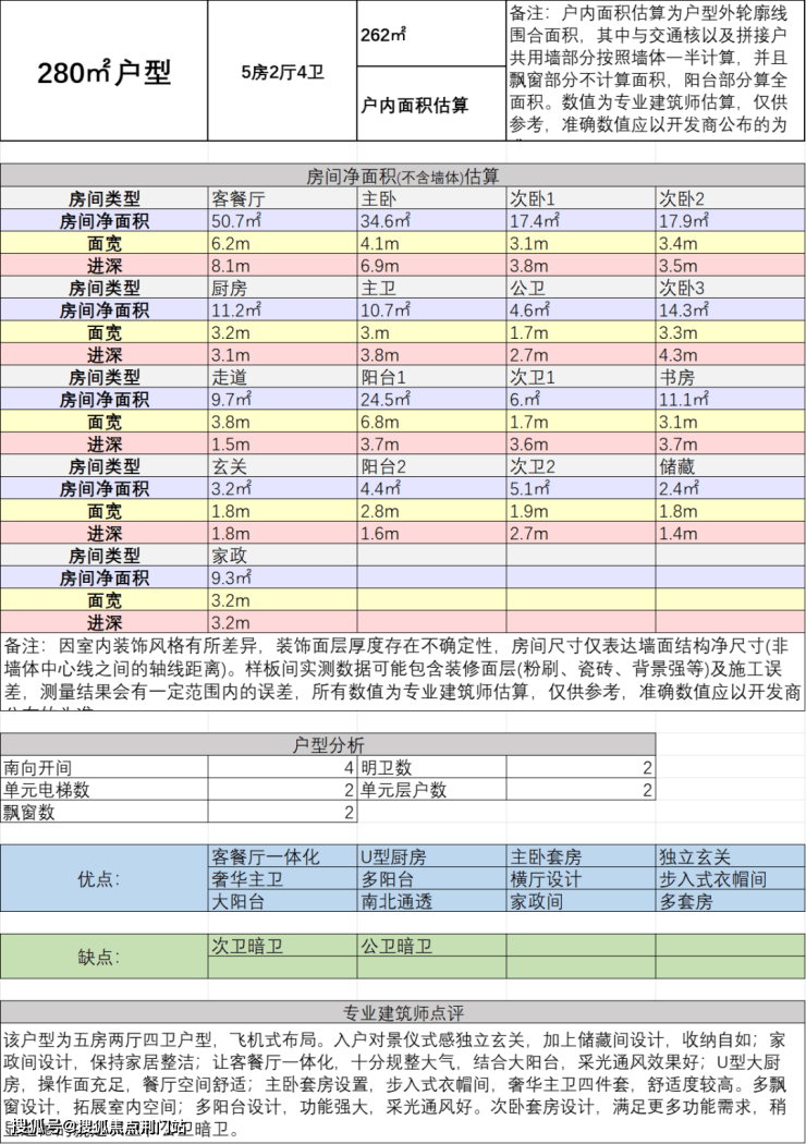 四、建面约280方五房两厅四卫:
