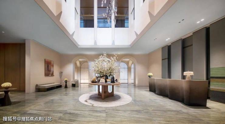 大堂中庭超7米挑空,打通双层视野,12座拱门形成极致的中轴对称,呈序列展开的拱形通道,仿佛艺术长廊,中央“月映华光”的艺术品,将西湖山水的意境生动诠释于此,每一位漫步其间的人,就像置身于自然人文艺术馆。