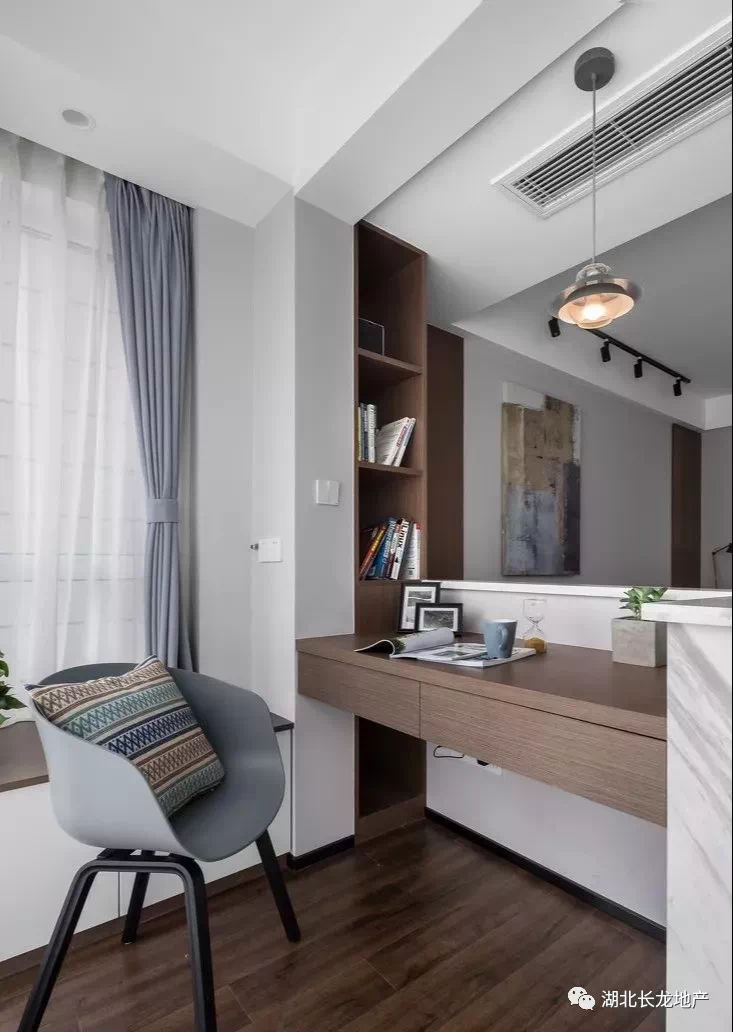 与飘窗设计连接的书桌,采光极好,阅读、学习的较佳场所。