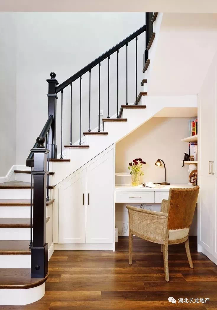 很多家庭的楼梯间都用来当杂物房,其实像这样归置一个学习角落是个不错的选择。