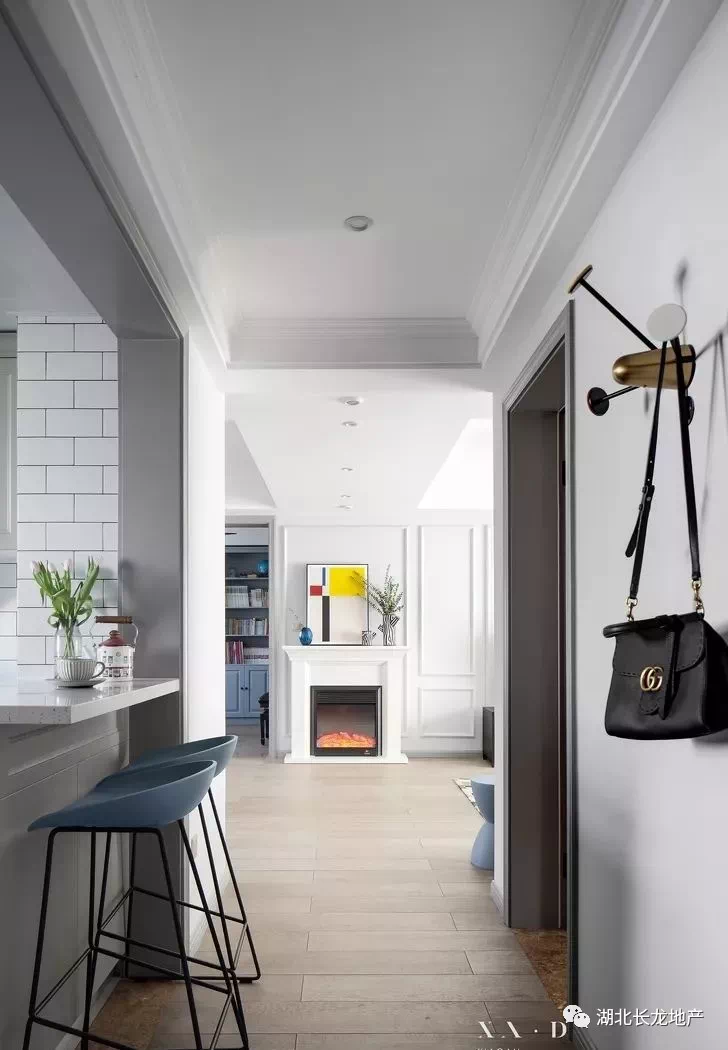 与厨房操作台相连的吧台,烹饪、用餐为一体,下面增加储物空间,可放美食书籍和孩子随处乱丢的手办玩具。
