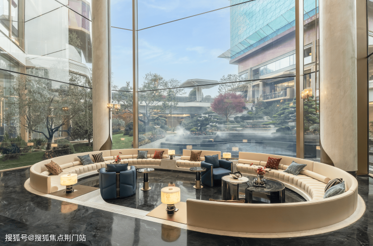 下沉式庭院里,搭配石材、水系和罗汉松,层次极为丰富,穿梭其中犹如在东南亚悠闲度假。