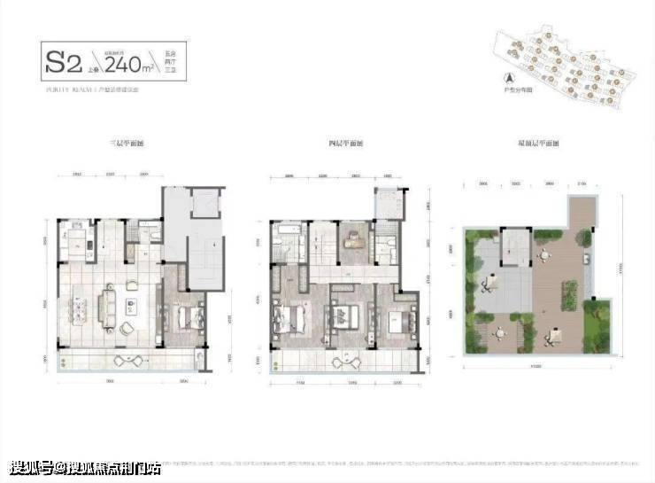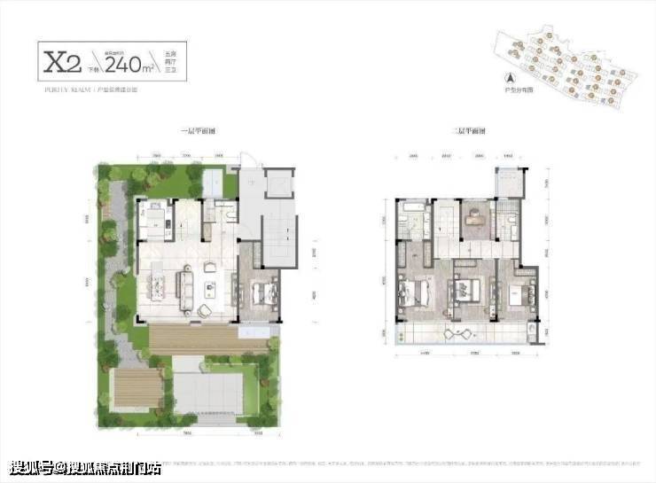 在户型的设计上则可以说更具优势了,以项目的约240㎡的户型为例,南向更是做到了单层约11m的三开间朝南全景面宽,两层相加南向面宽直逼约22m!超大面宽的硬性基础下,边套户型甚至连楼梯间都是明的。