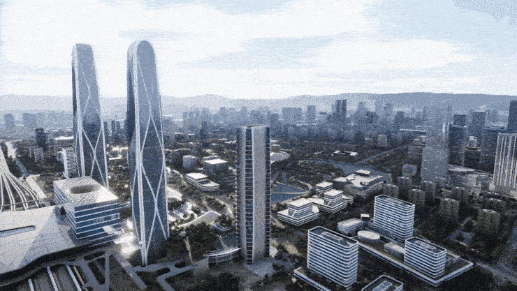 正如170m的武林西湖文化广场环球中心,310m的钱塘江畔「杭州之门」各自代言了杭州的西湖与钱塘时代,高达399.8m的西站「金钥匙」,引领总体量约130万㎡的杭州云门建筑群,将于杭州「第三中心」之芯,诠释着城市又一座领袖地标的兑现力。