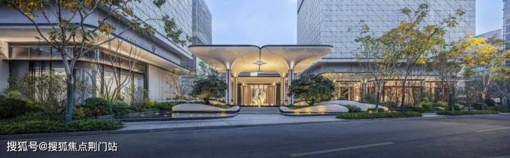 特选价值百万约200年树龄的日本茶梅;采用最长约13米的贝金米黄石材,整石切割的门头水景石材;标志性的芝兰玉树,从2:1到2.6:1进行比例迭新;架空层与街区圆融一体……