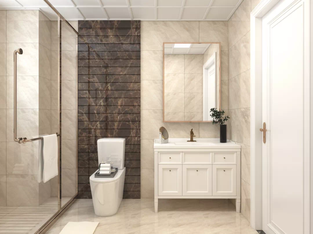 两个卫生间均做到干湿分离。大理石瓷砖贴面,视觉整体感更好。盥洗台下做了收纳储物柜,满足日常生活储物空间需求。