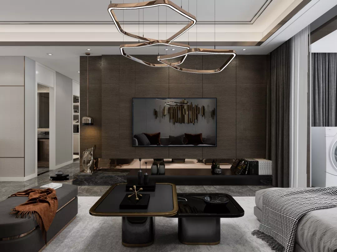 客厅通过现代感金属感强的装饰点缀元素来增加空间时尚感。