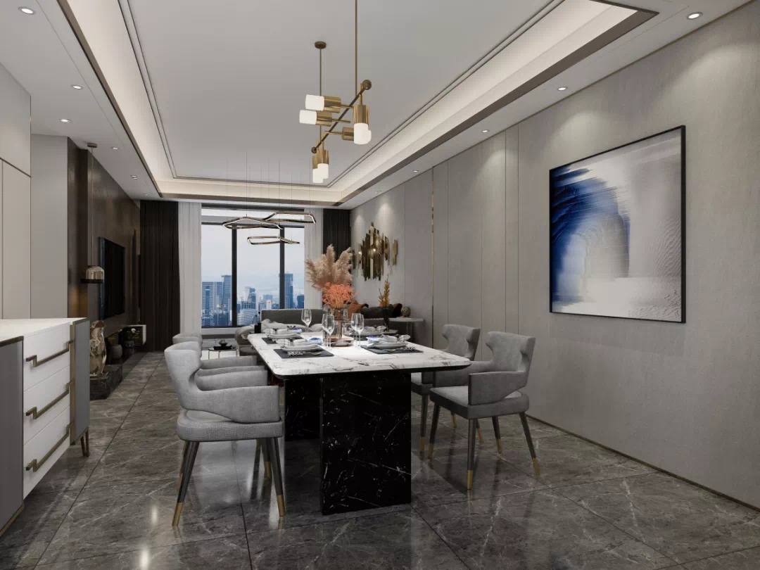 多种暖色调的融合,让餐厅氛围立刻活跃起来,顶面优美的线条加上精细的雕刻散发出它高雅的气质。