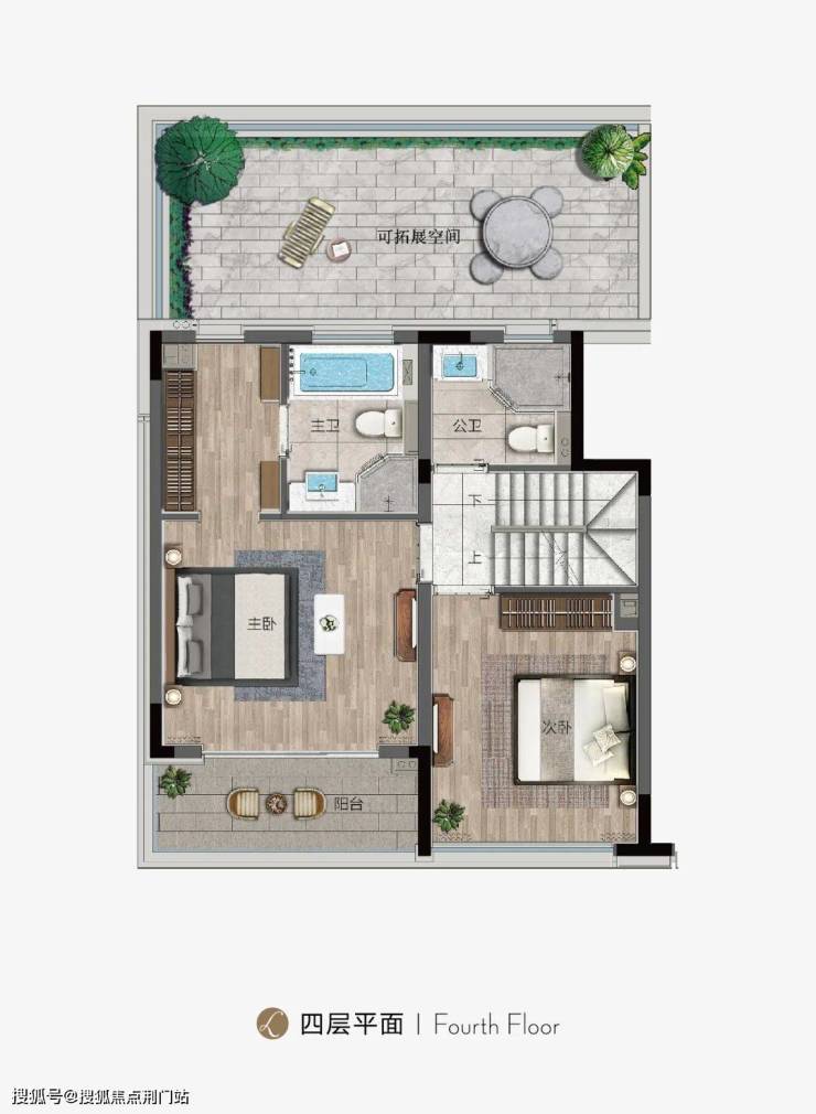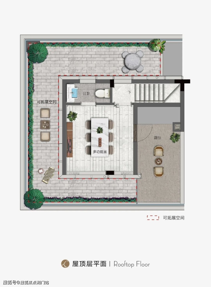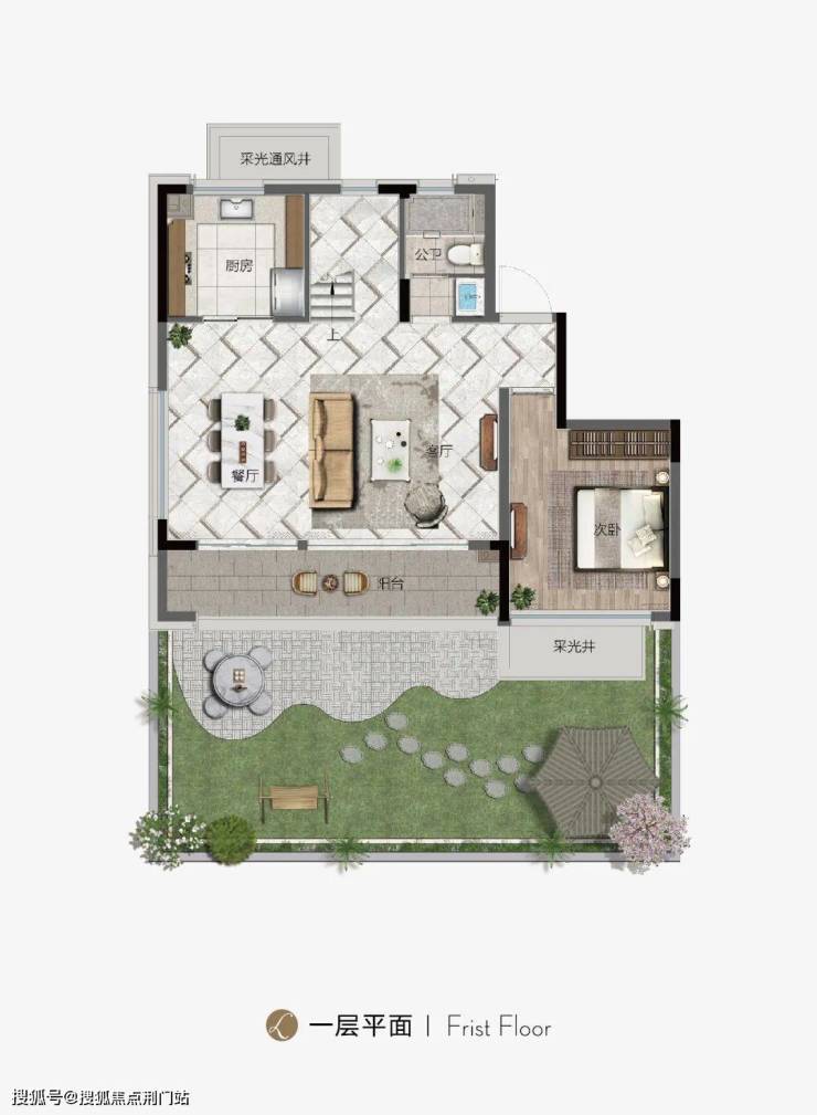 下叠带私享院子,跟随大园林的“阶梯爬升”的作法小阶梯入园,汀步条石板交叉拼铺装,分户绿篱所见即所得,不用后期交钱分户;