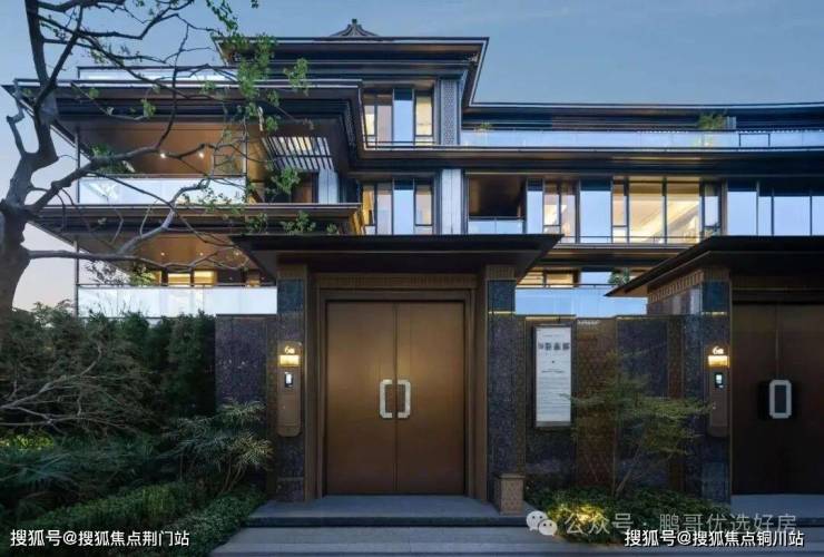 PART3⃣建筑美学,循古创新建筑立面采用了石材、大面积玻璃为主要材质;细节之处设计师搭配白色石材和鎏金线条,借鉴蜀山先照寺的重檐叠韵,独创镂空金属格栅,赋予立面吉祥如意,让建筑既是居所,亦是可传世的艺术珍藏。