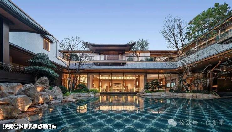 约1300方的下沉式主会所,巧妙地利用了下沉庭院与百年古树的景观,将恒温泳池、私宴厅等高端设施置于如画的景致之中。