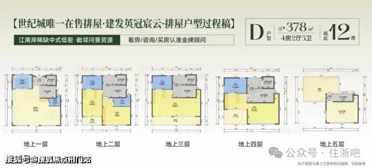 【排屋层高】1-2层约4.12m,3-4层约4m,5层约3.77m