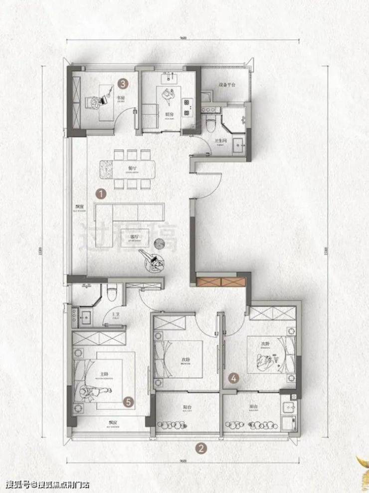 户型特点:这个面积户型有两款,一款是“四开间南户型”,每个房间都向阳,还是准双套房。另一款是少见的边套户型,自带约6.1米大边厅,套房主卧,功能性和舒居感兼备。