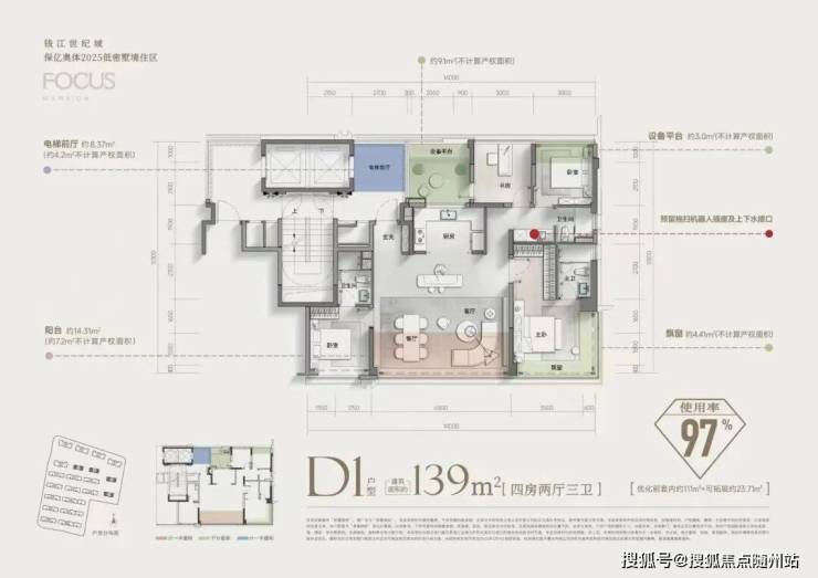 保亿·君潮润府在得房率方面表现卓越,这在当前杭州房地产市场堪称罕见。项目充分利用了新规划政策下的面积计算规则,通过飘窗、设备平台、封闭阳台等优化,大幅提升了实际使用空间。