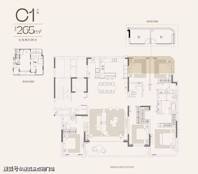 天澜传序府约265㎡户型图,后期可能存在局部调整,以实际交付为准