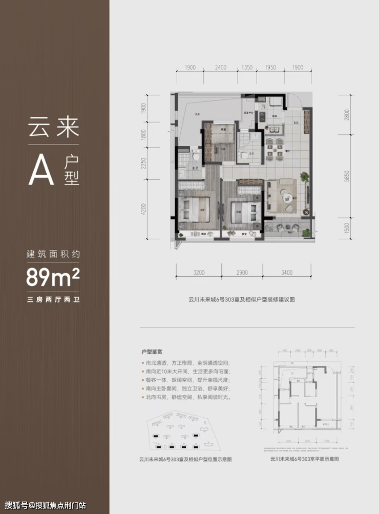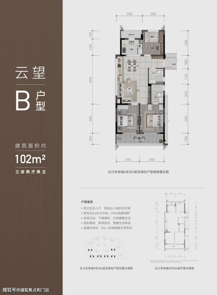 建筑面积约99㎡精奢三房,是中交·江望云城的主推户型。四开间朝南,约6米圆弧阳台揽景,三面环景视野开阔。全明户型,阔绰大横厅,媲美百余方户型的奢阔感,主卧套房设计,兼顾舒适与私密,重新定义品质生活。