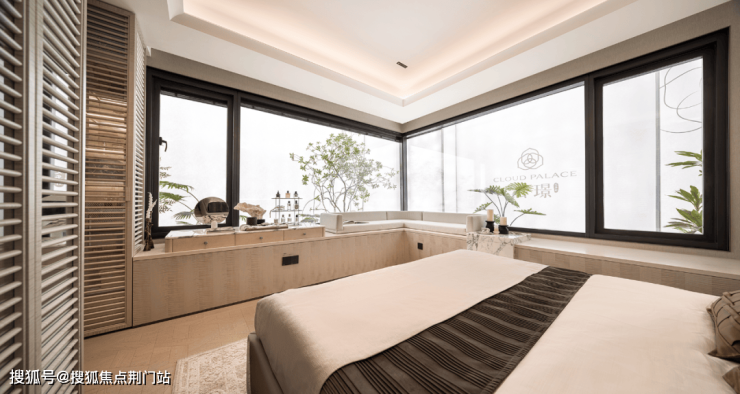最先亮相的建筑面积约145㎡南厅户型,还带独立电梯厅。主卧的270°转角飘窗,以罕见的极窄边框技术,叠加超大面玻璃,尽享无边界的视野采光。