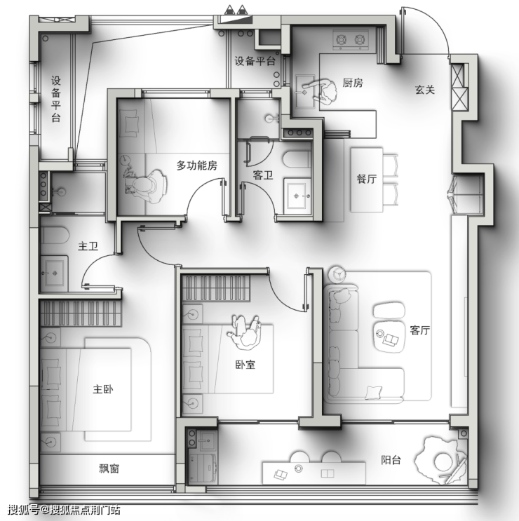 不仅做到了大边厅+四房,而且还带一个进深约2米的转角阳台(很多豪宅阳台进深也不过1.8米),就像自带一座空中花园。