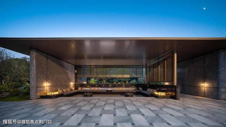 说是大门,其实这更像一方从城市过渡至小区的景观庭院。