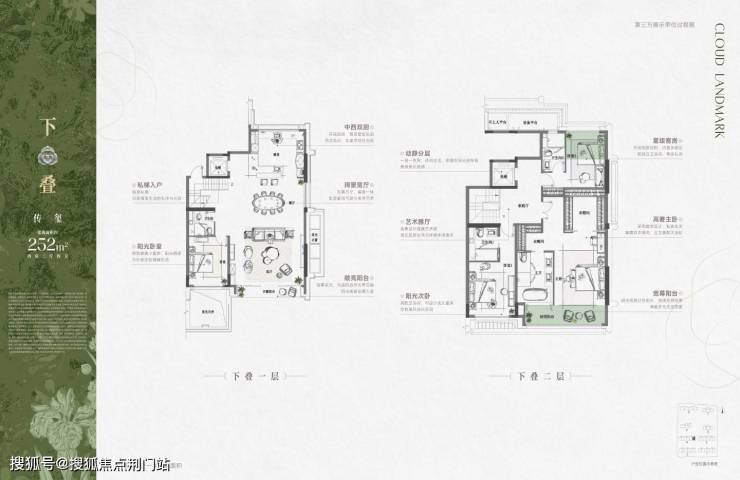 252㎡下叠:主卧套房自配双衣帽间,独享电梯,地下地上均双层,超高得房率,自带200方花园享私人庭院