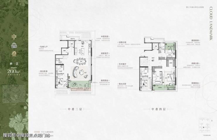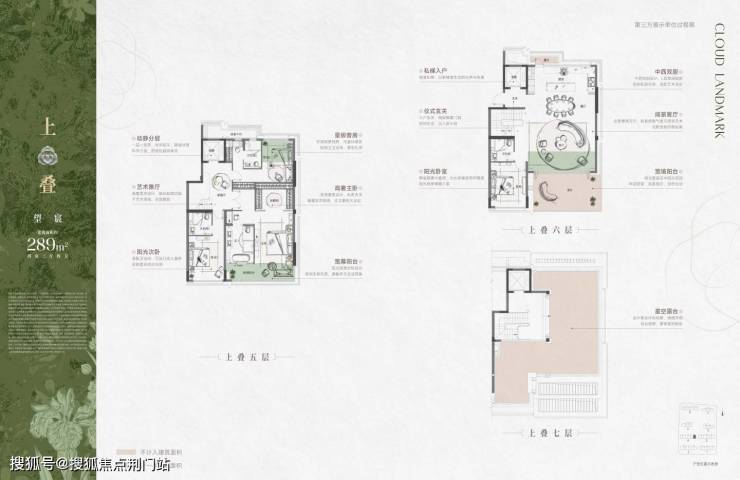 以上叠289㎡户型为例,三层空间可打造独立书房与露台;中叠260㎡的挑高客厅与下叠252㎡的庭院,均实现改善家庭的空间想象