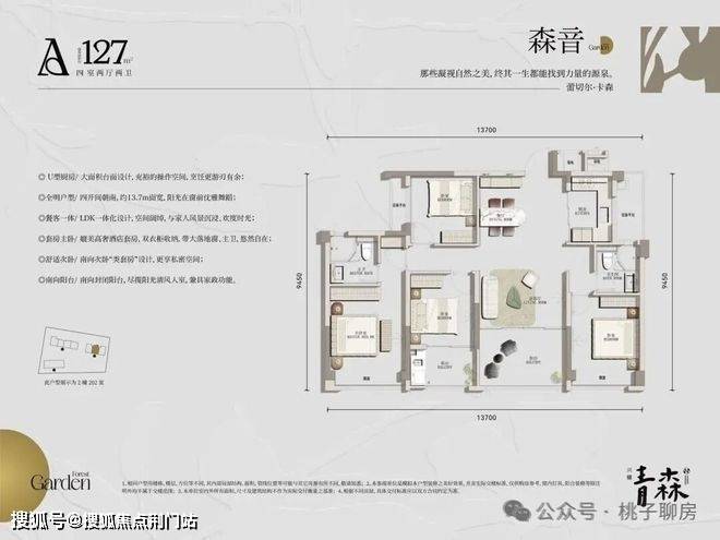 户型面积:约127-135-138㎡森系华宅