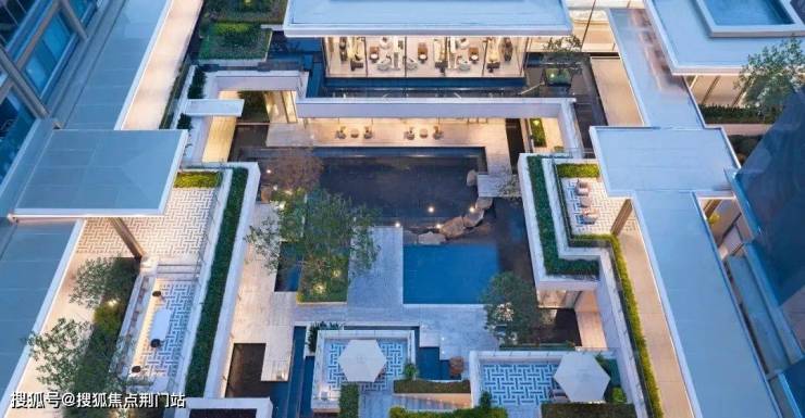 【下沉庭院】庭院巧妙利用约6米的高差,营造出丰富的空间层次感,中央布置大面积立体镜面水景,如诗如画。