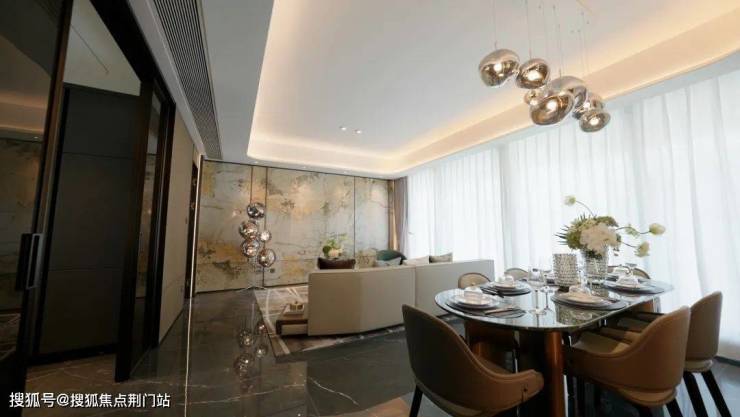 第二:整体布局有“仪式感”,现代审美与高级生活呼应。第一眼,近80米超大尺度主入口,以意大利普拉达绿奢石为基座,镶嵌千年罗汉松阵列,形成威严的森系迎宾序列,门庭的恢弘气场扑面而来。