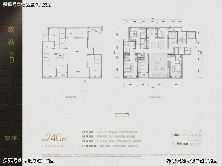 尤为值得一提的是主打户型——约240㎡南厅户型。该户型分布于12-16层的低密楼栋,享有接近一梯一户的尊贵体验,综合得房率约达90%以上。