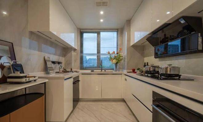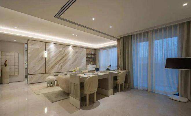 还有各种高级材料的运用,如维多利亚白石材、白玫瑰石材、地面拼花石材、土耳其雪花白石材、宝格丽黑石材、绿野仙踪岩板、贝母漆、皮革硬包等。