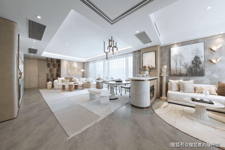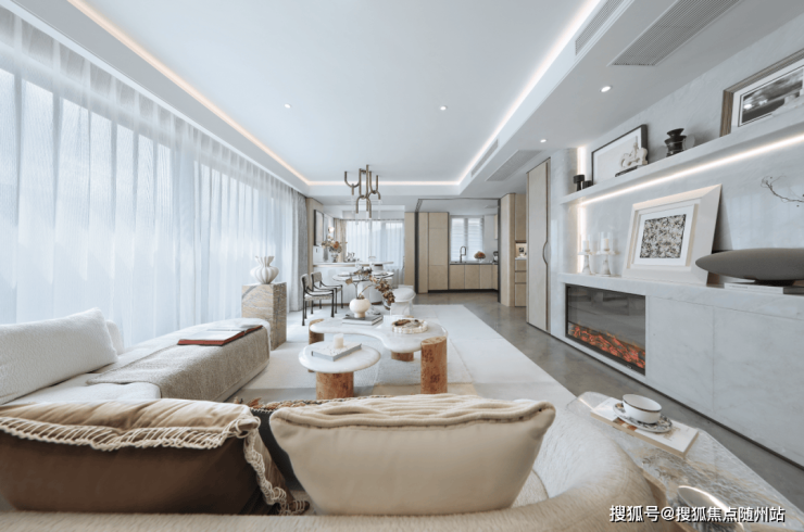 客厅背景墙的吊柜与储物格,展示柜的灯带与玻璃门,为收藏的Labubu提供了最佳舞台。这种“情绪收纳”的逻辑,让每一件物品都找到归属,也让生活回归纯粹。
