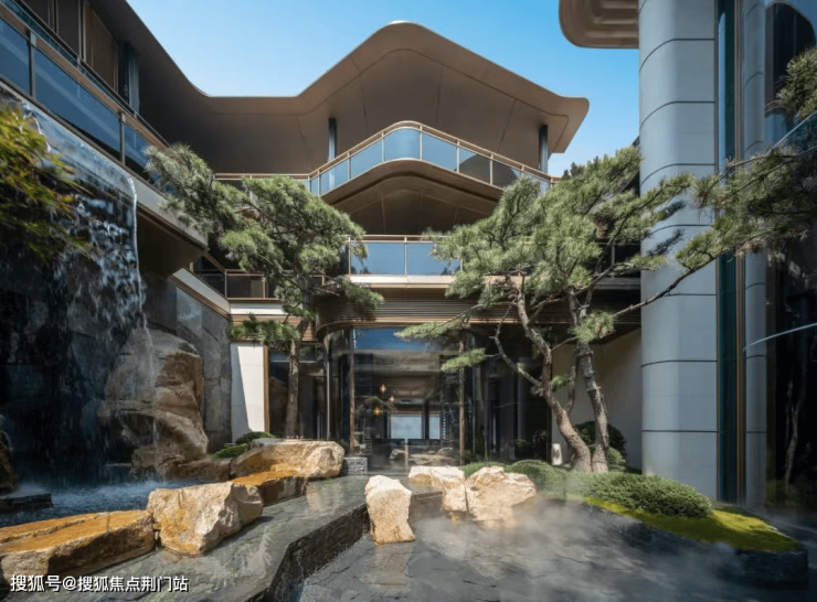 景观则借鉴西湖郭庄,于空间和场景的构建转换之中,植入水、石、松、亭、轩、瀑、桥等一系列传统园林符号,通过精妙的组合,营造充满诗意的栖居环境。