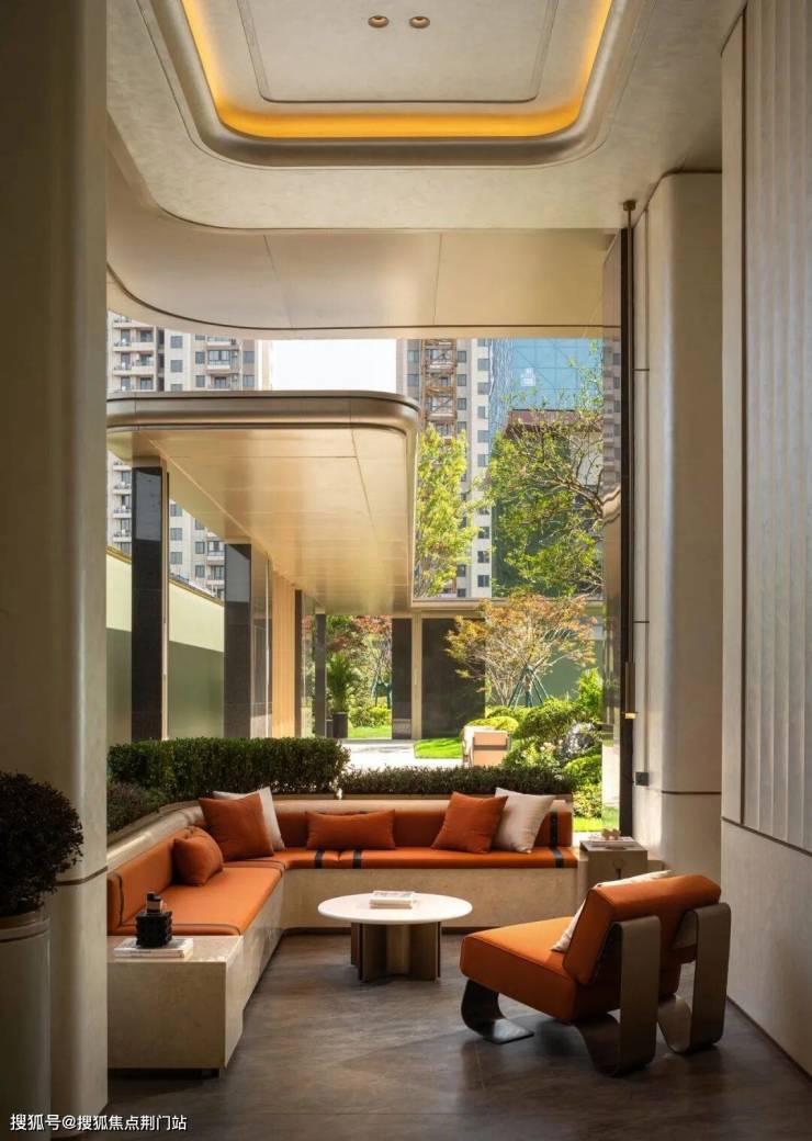 其创新性在入口处展现得淋漓尽致:常规沿街楼栋通常直接由物业用房过渡至住宅二层,但该项目在物业用房上方特别增设了架空层,形成"物业用房-架空层-住宅二层"的独特空间序列。这一设计突破性地通过地面整体抬升,不仅解放了沿街楼栋原本受限的架空层空间,更创造出尺度恢弘的入户大堂,使归家动线在垂直维度上获得仪式感的升华。