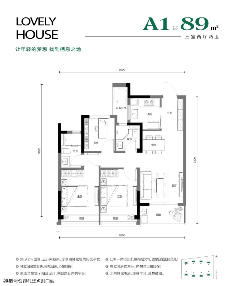 湖映里建面约89㎡户型功能完备,实用且舒心。