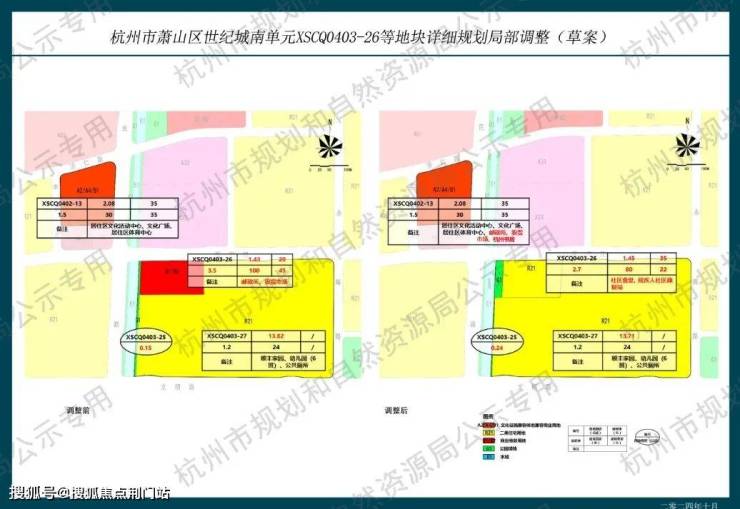 调整后:一宗含社区食堂、残疾人社区康复站的涉宅地块,容积率2.7,限高80米;
