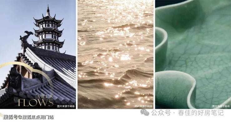 融入门庭引水、庭院围水、悬玉生水、重檐聚水等意境,并将月、潮、影等东方美学意象,进行当代转译,重溯东方屋檐建筑之美;提取蜀山先照寺重檐叠韵之形,萧山水脉清澜鎏金之色,萧博青瓷玉润流光之质,定制专属于萧山的逸庐之美。