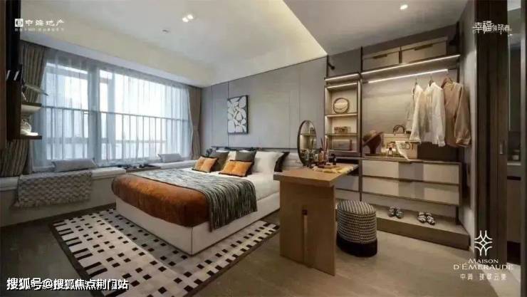 全屋约14.6米大面宽的尺度,让三个卧室都能够直面南向采光,实现阳光平权。主卧是豪华套房,除了飘窗、独卫外,由于空间够大,不论是衣帽间的梳妆打扮,临时办公等,也都能在主卧空间内实现。
