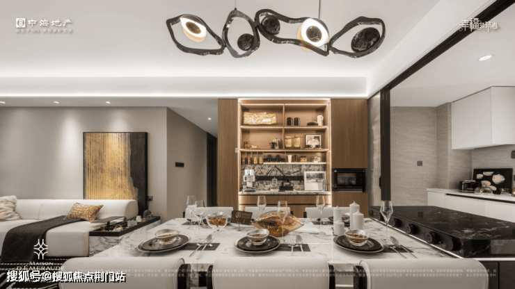 餐厅亦是如此,可以打造岛台,亦可以轻松摆下6-8人桌,侧边还可以打造一整面的餐边柜,假如吃饭的时候突然来了兴致,想小酌一杯,转个身就可以打开柜子,露出一面墙的美酒,精心挑选出一瓶,为客人满上。