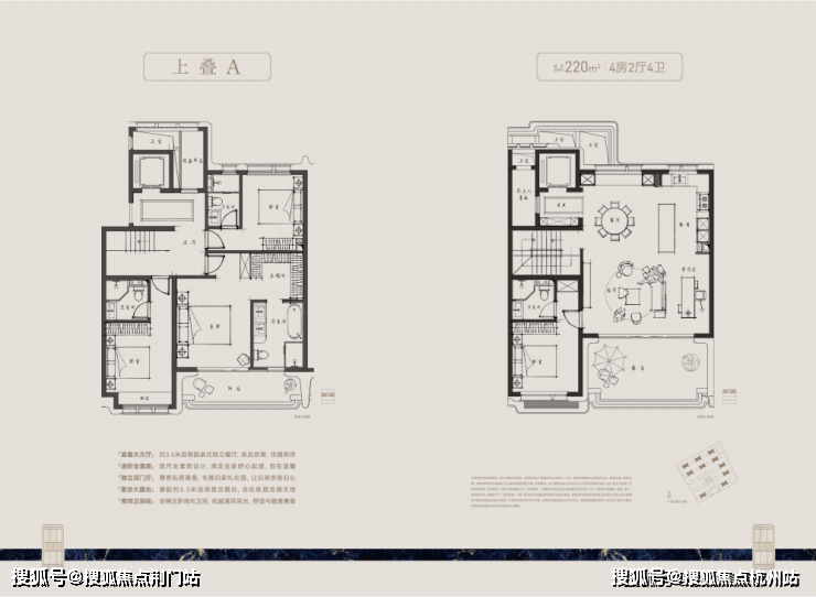 功能划分上,做到动静分离。上叠将卧室设置在三层,客餐厅放置在四层,外联大露台,有效避免与下叠静区的相互影响,业主在享受家庭欢聚的同时,也能拥有宁静的休憩环境。