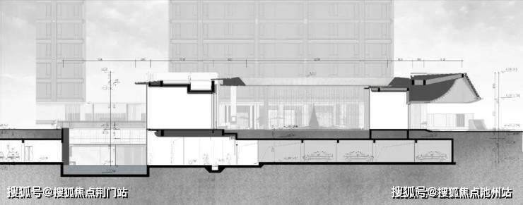 我们借鉴了赫尔佐格和德梅隆(Herzog & de Meuron)事务所设计的京杭大运河博物院所营造出“悬浮的博物馆”的独特效果,在设计时同样考虑入口挑空处理,超50m长横向展开的大门头尺度以涟纹高透水晶玻璃瓦为像素点,利用参数化的辅助设计手法徐徐展开一幅立面水波纹动态画卷。旖旎飘逸的发光屋盖造型犹如开启的鎏金宝盒,在夜晚中点亮一盏归家的暖灯。