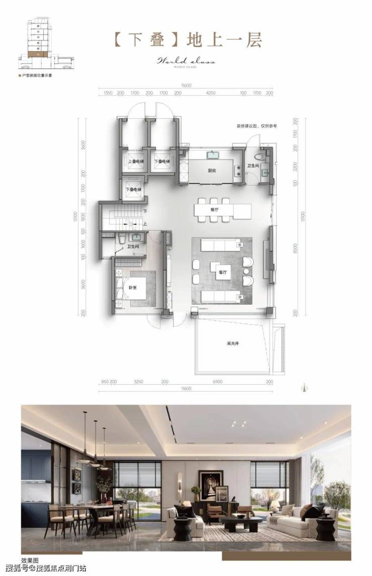 叠墅产品的地下室尤为一大亮点,约6.6m的恢弘挑高,采光井自然光线引入,让地下室告别传统叠墅的压抑逼仄,成为自由生长的志趣场域。,譬如同样是220方,叠墅则可以做到单层使用面积110方,比同样面积的排屋类产品,横向的面宽更大,空间更通透,让叠墅还能拥有到大平层的体验感。