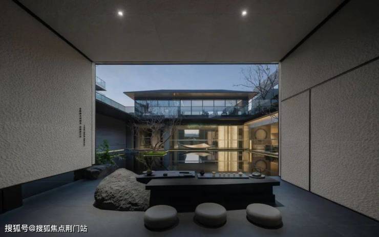 双叠空间匠心独运|由于项目地处坡地之上,设计师们巧妙地利用地形高差,打造出了独特的双叠空间。下叠地下室大部分高于地面,并配备了自然采光天井,使得地下室也能享受到阳光的沐浴,形成了一个下沉式的月光庭院。而上叠则大部分自带露台,西侧和北侧直面茶山,居住者可以在这里品茗赏景,尽享自然之美。