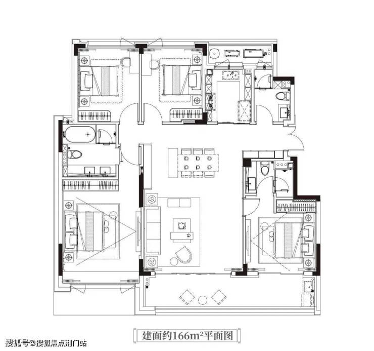 项目洋房建面约166m²平面图,存在调改可能,仅供参考