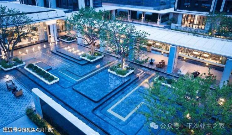 项目内部公区仪式感十足,西面小区人行入口处特意做了门厅,向里走是双景观水系、中心花园、集中绿地、下沉庭院和风雨连廊等。