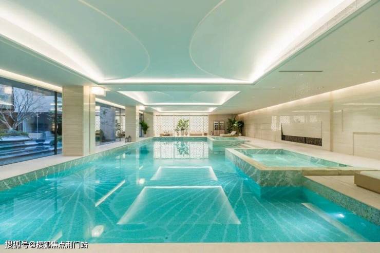 室内恒温泳池、健身房、室内高尔夫、私宴厅、茶室等高端会所配套俱全。3000㎡地下会所,融合了良渚玉琮纹样与现代材质,天珺为其取名:玉石枫林会所。
