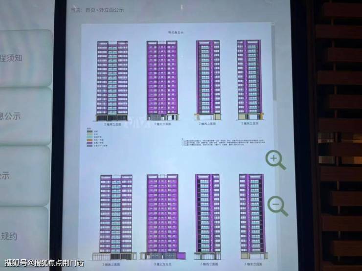 5⃣️望云璟宸府的外立面也公示的很详尽,一楼干挂石材,二楼及以上四面香槟色金属一体板。我拍了张图,这在售楼处里都能查阅到。