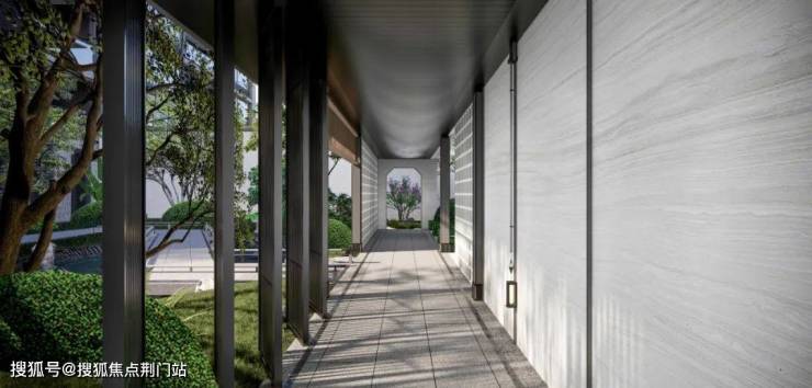 在园区规划和品质提升方面,注重高端社区的隐奢感和礼仪感,营造大宅的空间序列格局。空间轴线是建筑层次构建与韵律感的重要组成部分,本案在局促的场地条件下,通过合理高效的内部功能组织,采用多种虚实体块穿插和组合的方式,塑造贯穿南北的一条180余米主轴线。