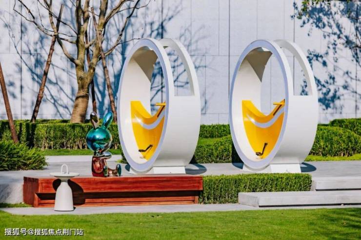 修剪成圆球状的灌木,这一排那一簇的,围合着一个四方形大草坪。四五株梅花,粉色杜鹃有序地点缀在童享体验区、健身活动区、林下会客区等 “全年龄”休闲互动区。