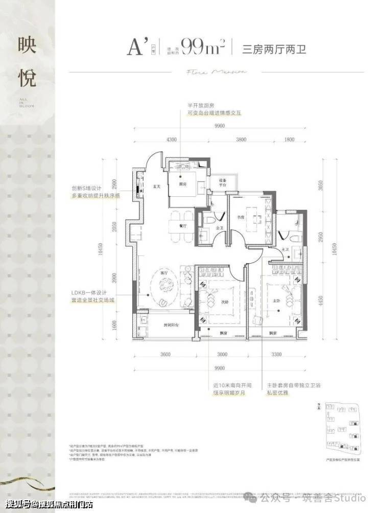 建筑面积约99平方米的舒适三居,匠心独运动静分区设计,三开间朝南布局,配备双飘窗与宽敞阳台,尽享室内通风采光之宜。特别推荐的是,该户型赠送面积使得实际得房率高达92%,室内走道空间紧凑,极大提升了空间使用效率…